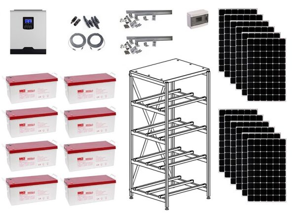 - Солнечный модуль 24В/250Вт моно: 12 шт.